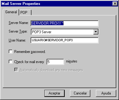 Nota: El numero del servidor Proxy, SMTP, POP3 hay que solicitarlo al Administrador de la Red.